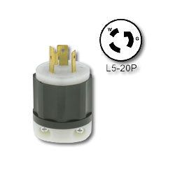 Locking 20 amp plug with black nylon body and cord clamp. Available with lighted end. NEMA configuration # L5-20P. Features: Heavy-duty construction for top performance in the environmental extremes of...