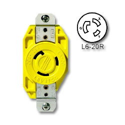 20 Amp 250 Volt, NEMA L6-20R, 2P, 3W, Flush Mtg Locking Receptacle. Industrial Grade, Grounding, Corrosion Resistant - Yellow.