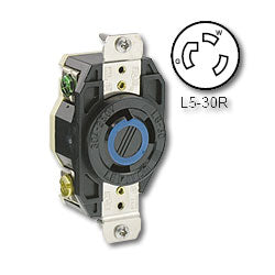 125V Industrial grade 2P, 3W, flush mounting locking receptacle. Features: Grounding V-0-MAX 30 amp 125 volt 2 pole 3 wire Back and side wired Industrial grade UL, CSA certified