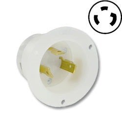 30 AMP 125V 2-pole, 3-wire grounding locking flanged inlet.