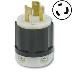 30 AMP 3 Ø 250V 3-pole, 3 wire non- grounding locking plug with a black nylon body.
