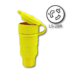 20 amp, 125 volt, NEMA L5-20R, 2P, 3W, locking connector, industrial grade, grounding, wetguard. Features: Grounding Wetguard 20 amp 125 volt NEMA L5-20R 2 pole 3 wire .375-.875 cord range...