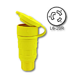 20 amp, 250 volt, NEMA L6-20R, 2P, 3W, locking connector, industrial grade, grounding, wetguard. Ships in 2 weeks.
