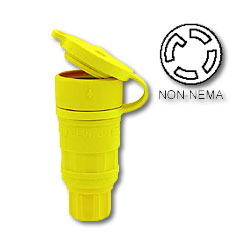 High-visibility yellow, industrial grade 30A - 3Y 125/208V 4-Pole, 4-Wire locking connector.