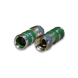 Leviton's Compression F-Connector is used in video applications such as CATV, and satellite. Its radial compression design provides a more secure termination on Series 6 Quad Shield Cable than the traditional hexcrimp design. Available in packages of 25, 50 and 100.