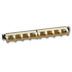 Sturdy single piece construction of fire retardant plastic rated UL 94V-0. Attached to a 19" wide stell rack-mount panel, painted black.