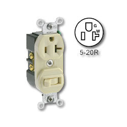 Duplex style single-pole, NEMA 5-20R AC combination switch.