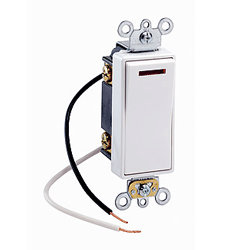 Decora Plus Rocker Lighted Handle - Illuminated OFF Single-Pole AC Quiet Switch, Commercial Grade, Self Grounding, Back & Side Wired, 20 Amp, 277 Volt. Features: Lighted handle - illuminated OFF...