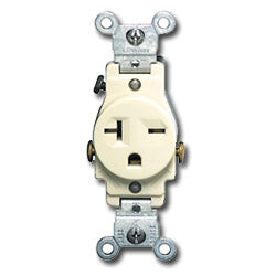 Narrow body single receptacle NEMA 6-20R. Features: 20Amp 250V NEMA 6-20R 2P, 3W Commercial grade Grounding Steel strap Side wired Straight blade
