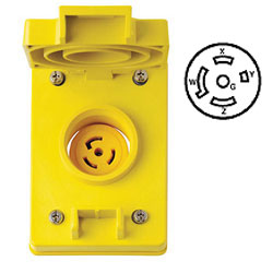 Industrial grade 20 amp wetguard flush mount locking receptacle with cover and ground. Features: NEMA L21-20R 20 Amp, 120/208 Volt, 3 Phase, 4 Pole, 5 Wire Back wired UL, CSA...