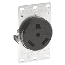 30Amp Receptacle for your recreational vehicle. Recreational Vehicle Receptacle Features: 30Amp 125V 2-pole 3wire grounding TT-30R 2P, 3W Straight blade Industrial grade Self grounding Side wired Steel strap