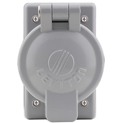 Weather-protective die-cast aluminum receptacle cover with lift lid for 50 amp single locking receptacles: 3769, 3771 and 7379.