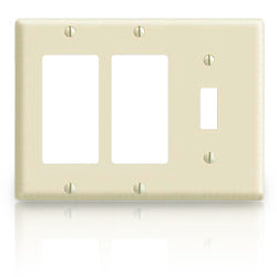 3-Gang, 1-Toggle 2-Decora/GFCI Device Combination wallplate. Features: Standard size Thermoset Device Mount