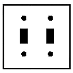 Midway size wallplate. Features: Midway size Thermoset Device mount 2-Gang 2-Toggle