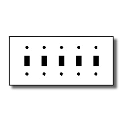 5-Gang toggle device switch wallplate, standard size with thermoplastic nylon and device mount. Features: Molded nylon for maximum resistance to impact, abrasion, grease, oils, acids, moisture, fading and discoloration Resistant...