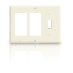 Combination wallplate 1-toggle 2-Decora. Features: Standard size Thermoplastic nylon Device mount Commercial grade