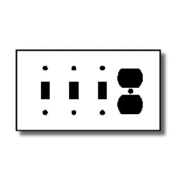 Combination wallplate 3-toggle 1-Duplex device. Features: Standard size Thermoplastic nylon Device mount