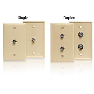 Provides one or two F-connectors. Smooth finish. UL Listed and CSA certified.