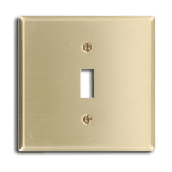 Standard size two gang with 1-toggle centered switch opening. Features: Standard size Device mount Metal wallplate 2-Gang, 1 centered opening toggle