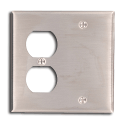 2-Gang 1-Blank 1-Duplex. Features: Standard size 302 S/S Box mount Commercial grade
