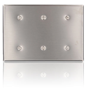 3-Gang no device blank wallplate. Features: Standard size Stainless steal Thermoset Strap mount Commercial grade