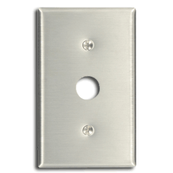 1-Gang .625 Inch hole device telephone/cable wallplate. Features: Standard size Metal wallplate Box mount Commercial grade Phone/cable .625" dia. hole, box mount Stainless steal