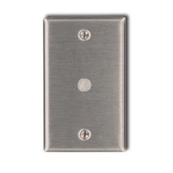 1-Gang .406 Inch hole device telephone/cable wallplate. Features: Standard size Metal wallplate Box mount Commercial grade Phone/cable .406" dia. hole, box mount Stainless steal