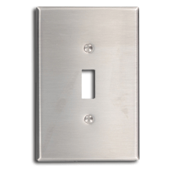 1-Gang 1-toggle oversized metal wallplate. Comes in packs of 5, 10 or 15 wallplates.