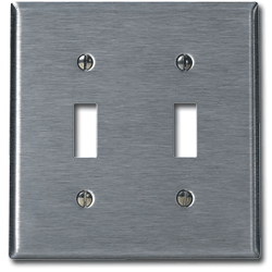 Two gang, Two Toggle oversized, stainless steel metal wallplate