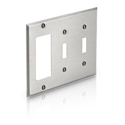 Toggle switch and decora/GFCI combination device. Features: Standard size Device mount Thermoset Stainless steel Residential grade 3-Gang combination device