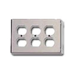 Duplex receptacle three-gang urea wallplate. Features 6 electrical-style openings, ideal for type 106 flush mount inserts. Non-combustible and easily cleaned. Screws provided. UL Listed. CSA certified. Conforms to NEMA and ANSI standards.