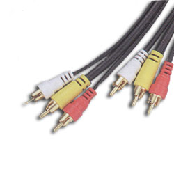 Molded gold-plated RCA plugs with strain-relief. Permits dubbing of VHS tapes from one VCR to another.