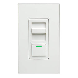 Single-pole fluid slide magnetic low voltage dimming control LED indicator when lights are OFF. Features: 600VA (450W) LED locator 120V AC 60Hz only Decora style design Minimum brightness adjustment ON/OFF...