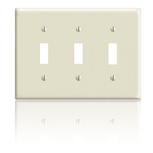 3-Gang toggle switch wallplate. Features: Midway size Thermoplastic nylon