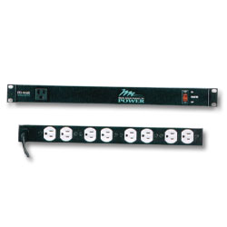 The PD-915R rackmount power distribution unit is equipped with 8 rear outlets and 1 front outlet. A generous 9" depth offers easy access to the 15 amp rear panel outlets which are solidly mounted on yokes to eliminate deflection.