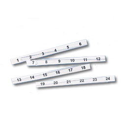 Replacement labels for Mini-Com M6 style modular faceplate patch panels with label/label covers. Labels are pre-printed 1-24 on one side and write on area on reverse side.