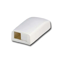 Surface mount box accepts one or two Mini-Com modules; includes built-in removable blank to add a second module. Dimensions: 1.06"H x 1.95"W x 3.65"L (26.92mm x 49.53mm x 92.71mm)