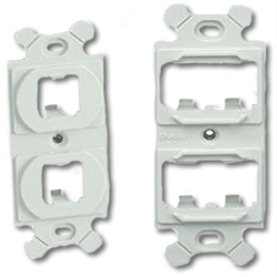Module frame accepts four Mini-Com modules. Features: Accept Mini-Com modules for STP and UTP, fiber optic and Audio/Video, which snap in and out for easy moves adds, and changes Mount...