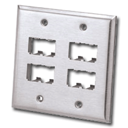 Mini-Com Stainless Steel Faceplates. Features: Accept Mini-Com Modules for STP and UTP, Fiber Optic and Audio/Video, which snap in and out for easy moves, adds and changes Optional adhesive labels...