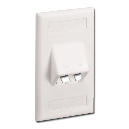 Single gang, sloped vertical faceplate accepts two Mini-Com Modules.