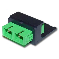 Module supplied with one SC APC duplex singlemode fiber optic adapter (AG) with zirconia ceramic split sleeves.