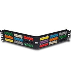 72 port angled high density flush mount patch panel supplied with rear mounted faceplates. Features: Accept Mini-Com Modules for UTP, Fiber Optic and Audio/Video, which snap in and out for...