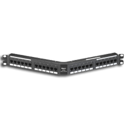 • Angled patch panels facilitate proper bend radius control and minimize the need for horizontal cable managers