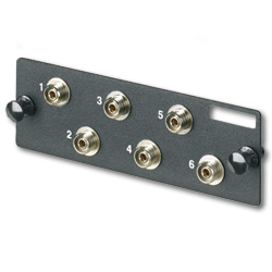 FC FAP loaded with 6 FC simplex multimode fiber optic adapters snaps quickly into the front of all Opticom components.