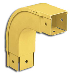 Fiber Duct System Fitting. Attaches to channel to create a 45° downward angle from a straight horizontal run. Used with inside vertical 90° angle fitting FIVRA2X2YL or FIVRA4X4YL to change level of straight horizontal runs. Cover included.