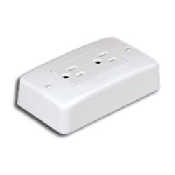 Single gang two-piece power rated low profile snap together outlet box, including 20A U.S. style rectangular electrical outlet. For use with Pan-Way LDP3, 5 or 10 or LDS3 or 5...