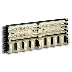 Pan-Punch Category 5e 19in. Rack Mount Panel. Two 100 pair bases with jumper troughs premounted to panel.