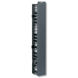 Front Only Vertical Manager has fingers that align with rack spaces to simplify cable routing. Increased finger spacing accommodates up to 24 Cat 6 cables for each space eliminating the need to remove fingers for cable routing.