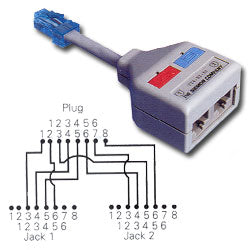 • Splits a 4-pair T568B jack for Token Ring or voice applications at either jack