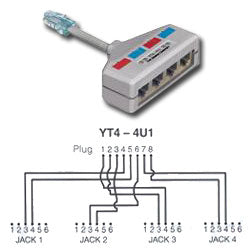 Siemon's modular 4-way splitter provides access to each individual pair of a 4-pair modular outlet.